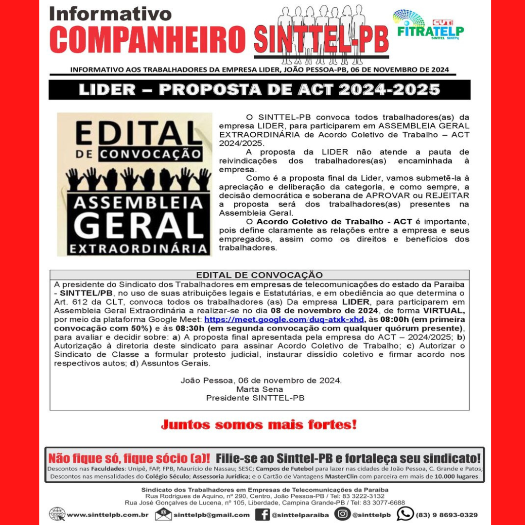 HomeBoletins Boletins LIDER – AGE ACT 2024-2025 Por Sinttel Paraíba 8 de novembro de 2024 0 88 FacebookTwitterPinterestWhatsApp Share FacebookTwitterPinterestWhatsApp Previous articleOI – AGE DE ACT 2024-2026Next articleSINTTEL-PB: AGE DE PRESTAÇÃO DE CONTAS