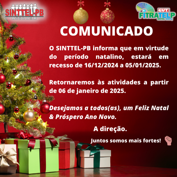 HomeNotícias Notícias Recesso Final de Ano! Por Sinttel Paraíba 13 de dezembro de 2024 0 106 FacebookTwitterPinterestWhatsApp Share FacebookTwitterPinterestWhatsApp Previous article1º Torneio de Futebol Society em TelecomunicaçõesNext articleSINTTEL-PB: Retrospectiva 2024!