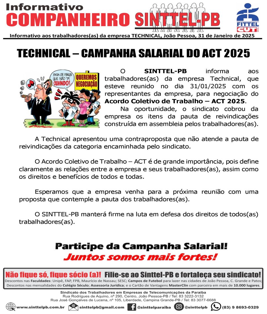 HomeBoletins Boletins TECHNICAL: NEGOCIAÇÃO DO ACT 2025 Por Sinttel Paraíba 5 de fevereiro de 2025 0 70 FacebookTwitterPinterestWhatsApp Share FacebookTwitterPinterestWhatsApp Previous articleFilie-se! Parcerias Sinttel-PB x MasterClinNext articleA&C: PROPOSTA VERGONHOSA DE ACT 2025